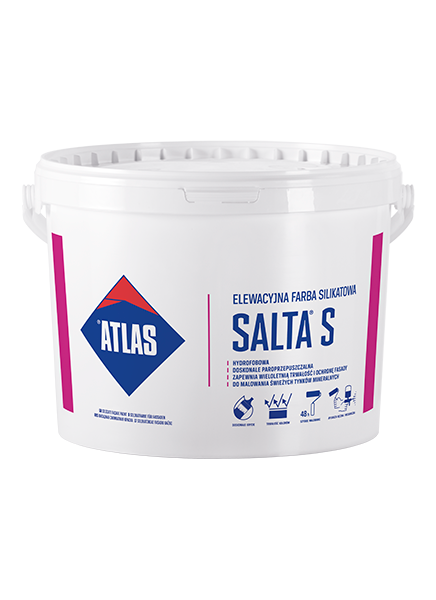 Hybridbindemittel mit Kettensilikaten, die Farbe ATLAS SALTA S wird auf Basis eines Mineralbindemittels mit Polymeren angereichertes Kaliumsilikat hergestellt, daher zeichnet sie sich durch einzigartige physikalisch-chemische Eigenschaften, ideale Arbeitsparameter und vor allem langjährige Dauerhaftigkeit ohne Beeinträchtigung der technischen und ästhetischen Eigenschaften aus.
