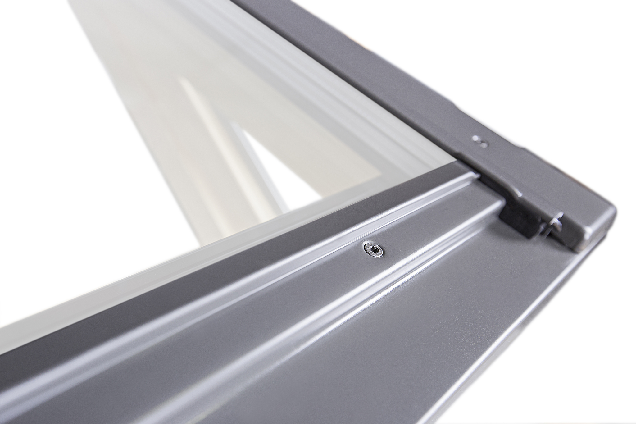 Das auf halber Höhe des Fensters angebrachte Scharnier ermöglicht es, den Flügel zu drehen und in der offenen Position zu belassen, während der Griff am unteren Ende des Flügels eine einfache Bedienung des Fensters und der Mikrokippfunktion ermöglicht.