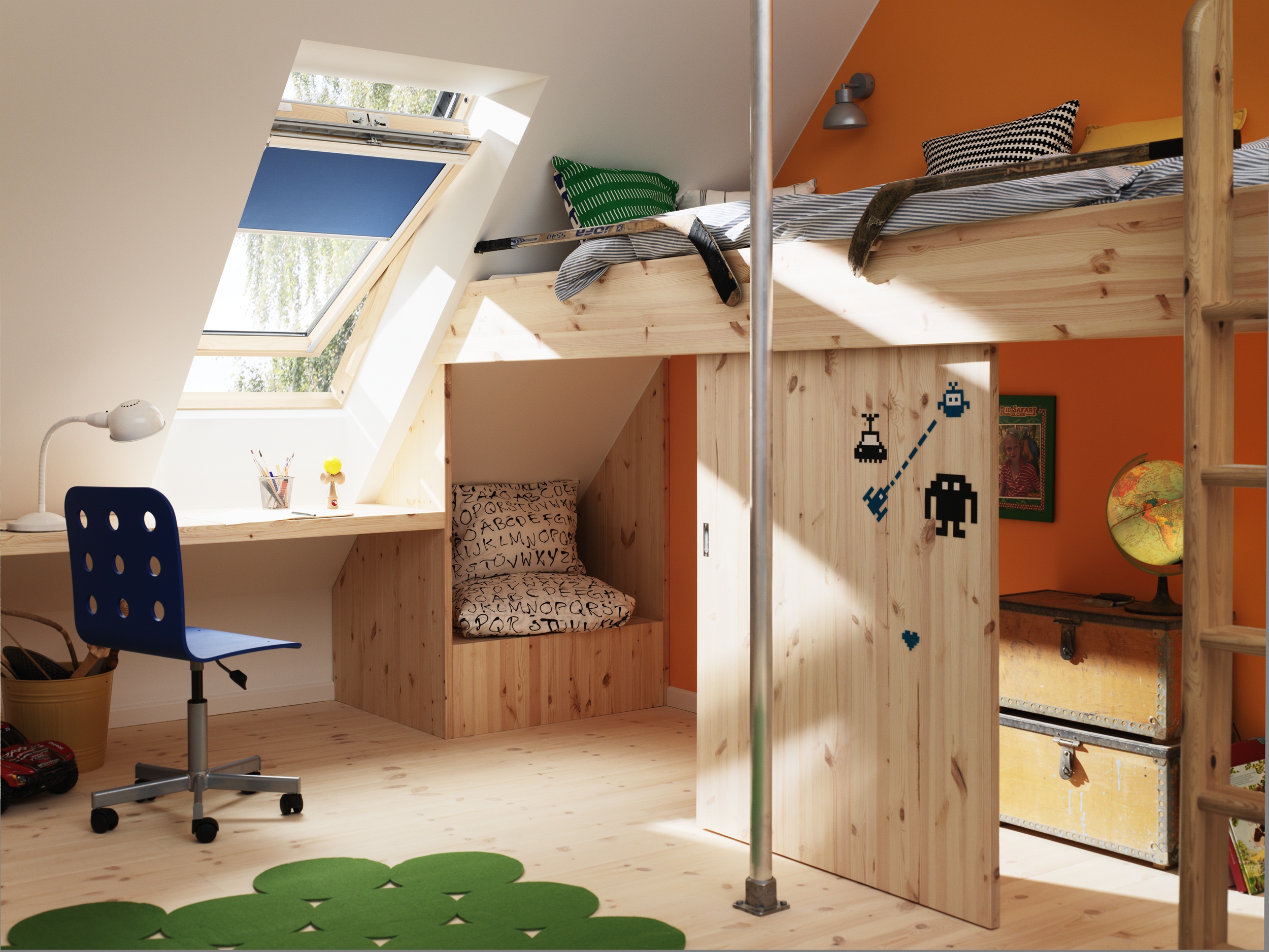 Das Schwingfenster G mit einer komfortablen Griffleiste im oberen Bereich des Flügels ermöglicht problemloses Öffnen und Schließen des Dachfensters ohne Bücken. Die praktische Obenbedienung schafft Platz für Möbel unter dem Dachfenster, ohne dass dadurch der Bedienkomfort eingeschränkt wird. Auch kann das Dachfenster bei Einbau im Kinderzimmer problemlos bedient werden, selbst wenn die Spielfläche direkt darunter liegt.