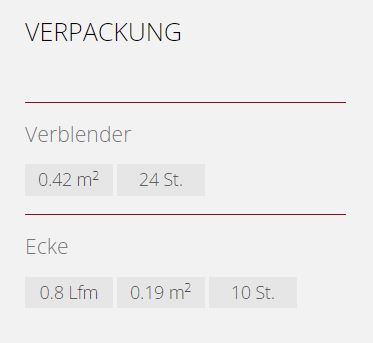 | Verblender | 24 | 0,42 m2 | 15 kg |