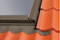 - F - Eindeckrahmen für wellige Dacheindeckungen (z.B. Keramik-Dachziegel, Blechdachziegel); durch das Unterteil mit der elastischen Schürze ist eine sichere Abdichtung und Wasserableitung vom Eindeckrahmen auf die Dachfläche gewährleistet.