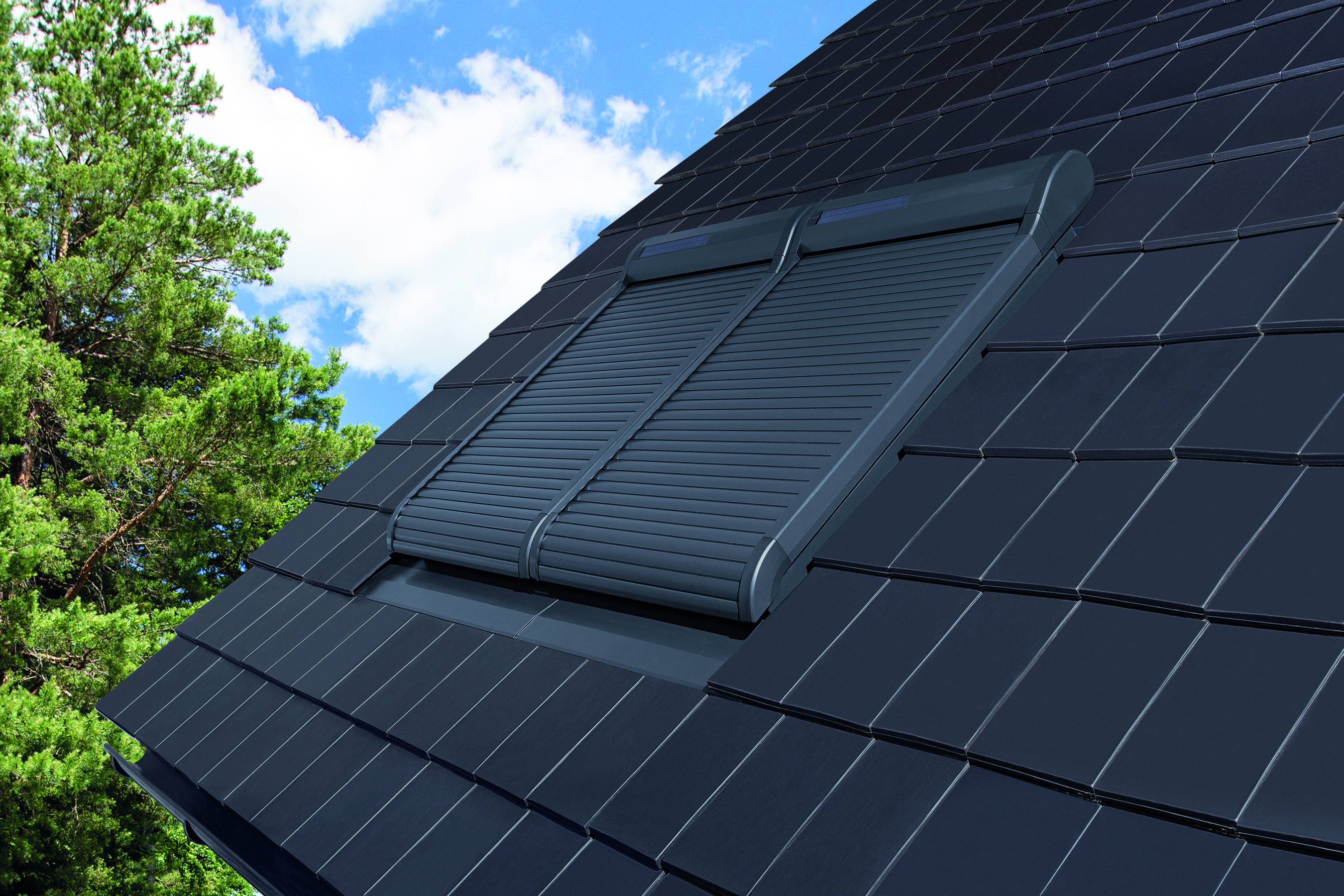 Der am Dachfenster angebrachte FAKRO Außenrollladen reflektiert Sonnenstrahlen und stellt einen Hitzeschutz dar. Er sorgt dafür, dass an heißen, sonnigen Tagen die in den Wohnraum eindringende Wärme reduziert wird. In den Sommermonaten wird durch diesen Vorgang eine angenehme Raumtemperatur bewirkt. Die Lamellen bestehen aus Aluminium und sind auf der Innenseite mit einem Material versehen, das den Wärmefluss von Außen in Scheibenrichtung beschränkt.