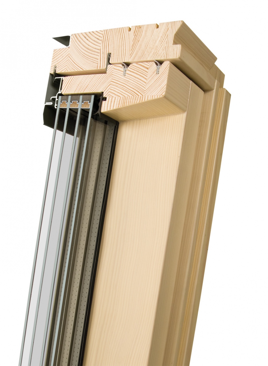FAKRO FTT U8 window with innovative structure, characterized by superb thermal performance and air-tightness is suitable for air-conditioned rooms with mechanical ventilation systems as well as passive buildings. It offers very good overall heat-transfer coefficient for the whole window, guaranteeing significant energy savings. The glazing unit is set in a specially designed sash frame, which offers wider wooden profiles in comparison with standard windows. The window is equipped with five seals. Such structure minimises thermal bridging and provides improved window insulation.