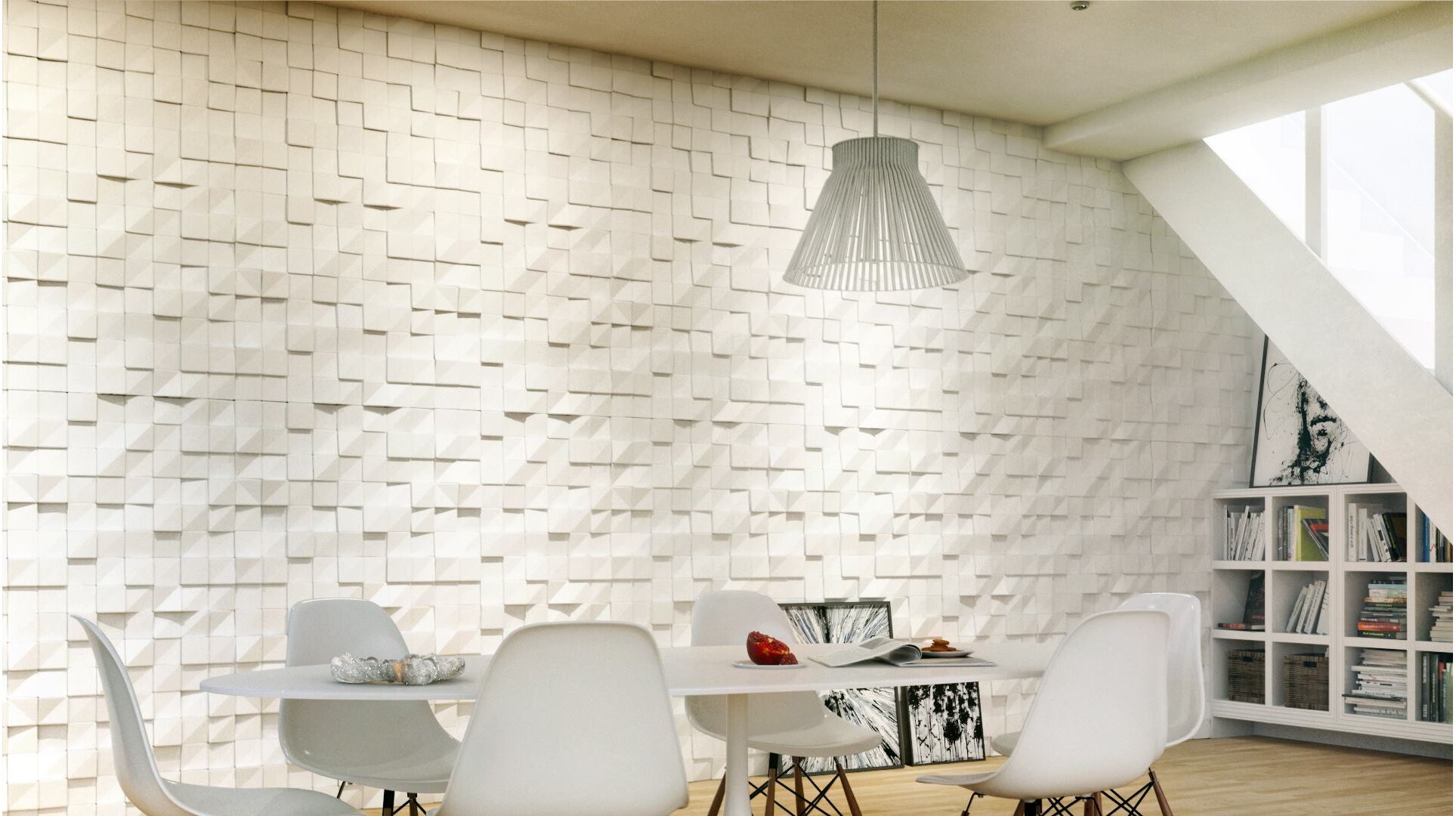 Die Wandpaneele QUADRAT, sogenannte 3D Paneele sind aus Gips gefertigte Wandverkleidung. Quadrat ist einelegantes, aber dennoch bescheidenes Paneel. Wir haben beim Entwurf eine Reihe von kleineren Elementen verwendet, um den Innenraum optisch zu vergrößern und ihm einen Hauch von jugendlicher Frische zu verleihen. Diese geometrische Dekorplatte passt wunderbar sowohl zu Geschäftsräumen als auch zu Haus- und Kammerräumen.
