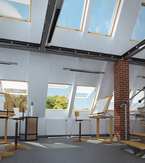 • Zugelassene Dachneigung 15° - 55°, Einbau mit entsprechendem Eindeckrahmen