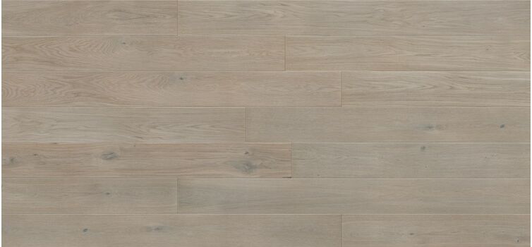 Aschgrau gefärbte und matt lackierte Holzdielen. Stark abgeschrägte Kanten (Fasen) und eine natürliche Holzstruktur, die durch das Bürsten betont wurde.