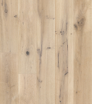 The structure of the wood in Ivory Grande flooring is clearly emphasized by brushing and its edges defined by bevelling. The board is subtly coloured, and enriched with natural oil.