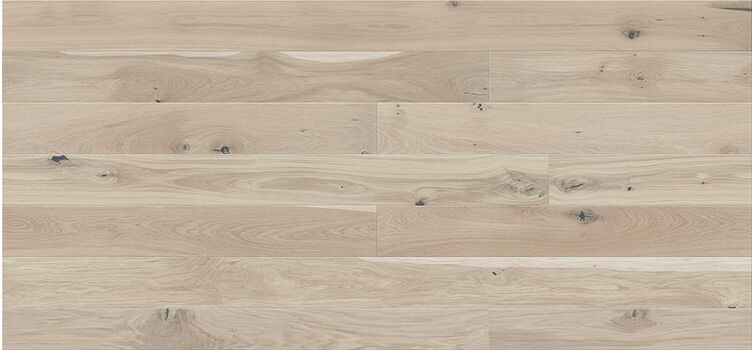 Single plank board of width 155 mm and with a slightly creamy colour. The four-side micro-bevel gives the impression of slenderness. Finished with matt lacquer.