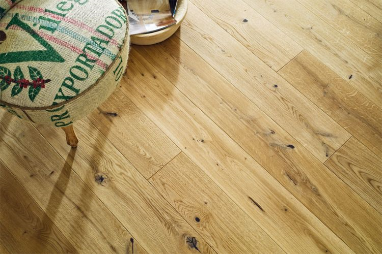 A product with features of oak wood on clear display. The floor’s surface divisions are brought out by bevelling. The grain pattern and depth of colour of wood enhanced by brushing and finishing with natural oil.