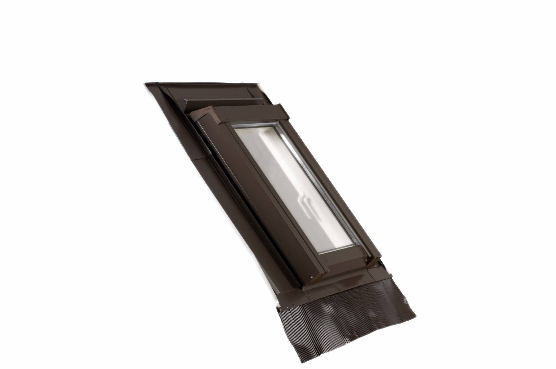 A flashing is an essential element allowing correct installation of a roof window in the roof slope. The precisely designed systemic elements of the flashing enable tight and durable integration of the window with roofing. It is very important as the main task of the flashing is to drain water and snow away from the window and protect it against the wind. The flashings are manufacture from aluminium sheet, coated with hard-wearing polyester lacquer. The basic color is umbra Grey (RAL 7022), thanks to which windows go well with standard colors of roofing materials. Flashings are used for connecting the windows with roofing and it is the roofing which decides about their selection.