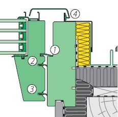 - 5 glazing seal provides additional tightness in extreme weather conditions and reduces the micro pulses of the cladding profiles during heavy rain;