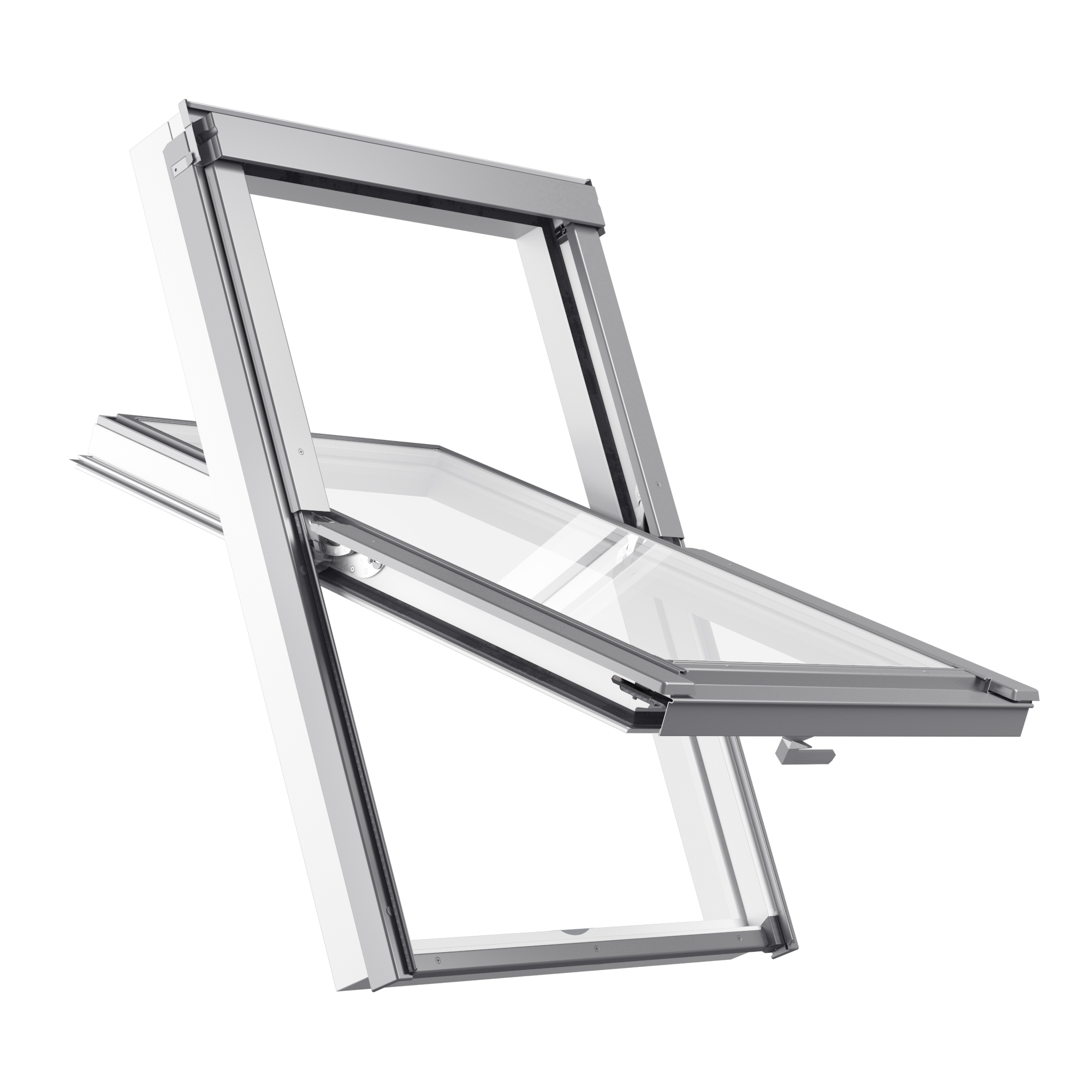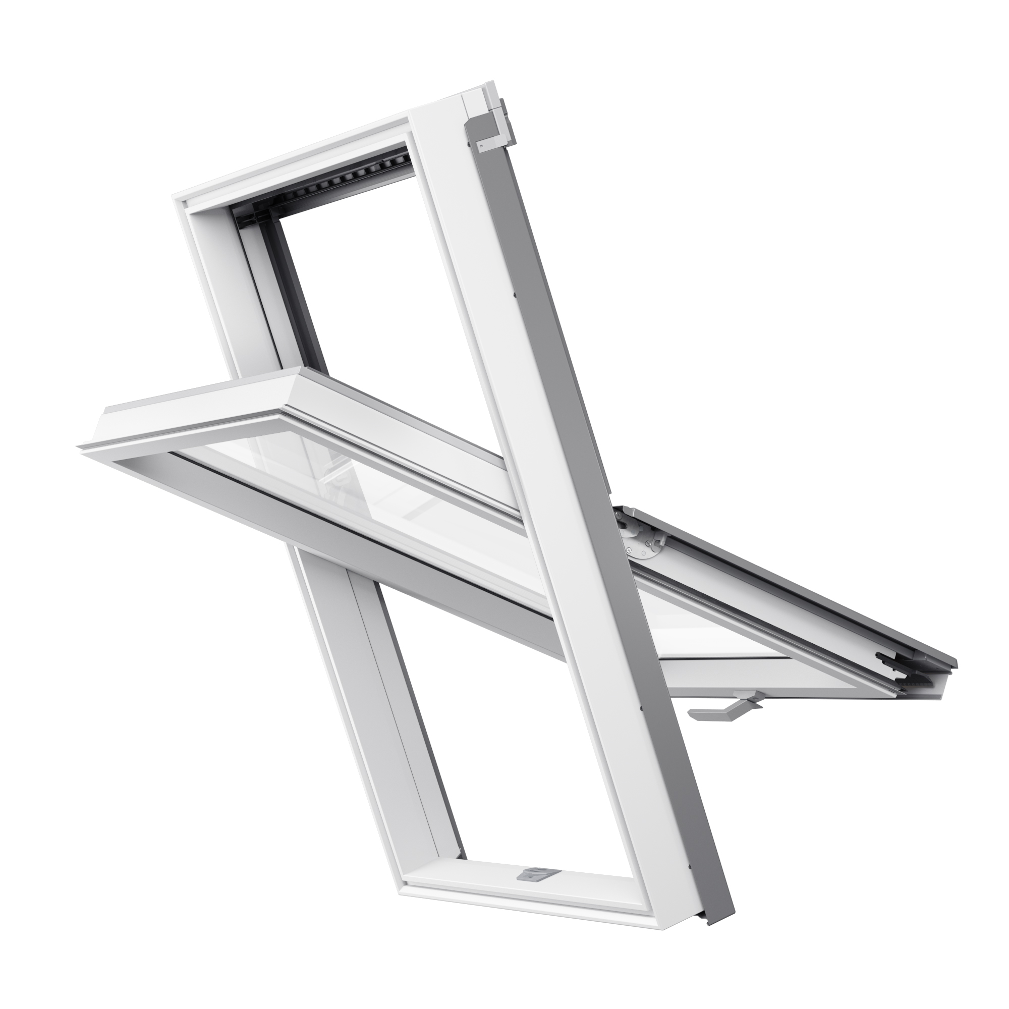 SOLID PVC SAFE is a window with a centre pivot (hinges mounted at half window height) manufactured from white PVC that is reinforced internally with steel profiles.