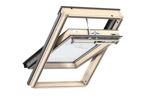 VELUX GGL SOLAR is a solar powered center pivot wooden roof window. With tripple, safe, easy to clean and anti dew glazing.