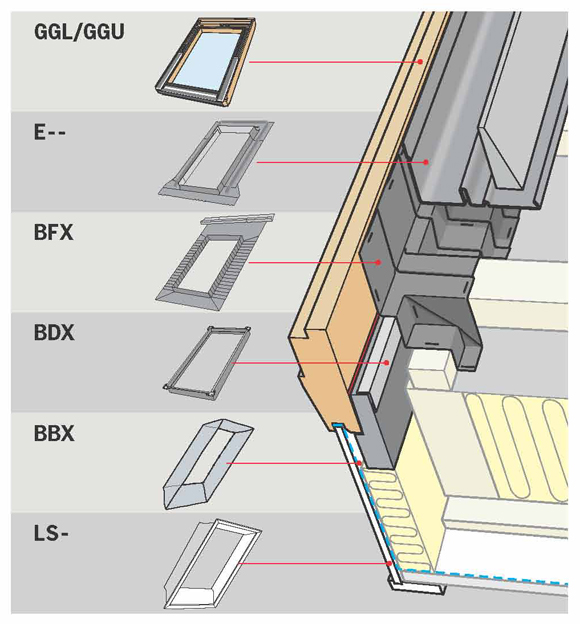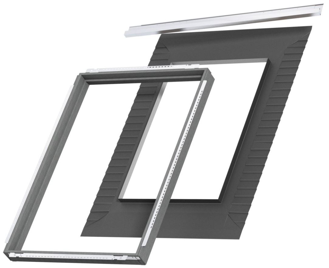 Für den fachgerechten Anschluss des Fensters ans Dach - Das Dämm- und Anschlusset BDX. Es beinhaltet einen Dämmrahmen, eine Anschlussschürze sowie eine Wasserableitrinne.Idealerweise wird ein Dachfenster beim Einbau zusätzlich gedämmt um den Blendrahmen herum. Durch den Einsatz des Dämmrahmens wird für eine fachgerechte Wärmedämmung zwischen Fenster und Dach hergestellt - Das Dachfenster wird sozusagen warm eingepackt, wodurch schädliche Wärmebrücken vermieden werden. Auch hilft diese zusätzliche Dämmung, das Ausfallen von Kondenswasser zu verringern. Die Montagewinkel von Dämmrahmen und Dachfenster sind so aufeinander abgestimmt, dass beide Elemente passgenau und dauerhaft zu einer stabilen Einheit verbunden werden. Zudem ist so ein einfacher und schneller Einbau garantiert. Der Dämmrahmen besteht aus aufgeschäumten Polyethylen mit der Wärmeleitgruppe 040.
