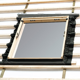Die Anschlussschürze sorgt für einen regensicheren Anschluss an das Unterdach, bzw. an Unterspann-/Unterdeckbahn. Sie ist auch einzeln als Produkt "BFX" zu bestellen. Die Schürze ist plissiert und diffusionsoffen, wird mittels eines Butylklebestreifens am Blendrahmen des Dachfensters befestigt.