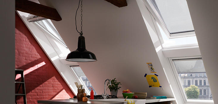 Auch bereits eingebaute, manuell bedienbare VELUX Dachfenster lassen sich bequem mit VELUX INTEGRA Elektro-Sonnenschutz & Rollläden nachrüsten. Hier benötigen Sie zusätzlich eine Einzelsteuerung KUX 110 inklusive Funkbedienung.