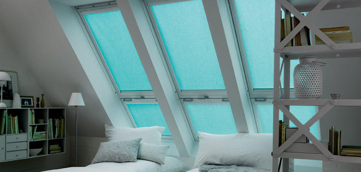 VELUX Sichtschutz-Rollos RFL mildern blendendes Sonnenlicht ab und tauchen den Raum in angenehmes, stimmungsvolles Licht. Außerdem schützen sie vor fremden Blicken, um die privaten Momente des Alltags entspannt genießen zu können. Das attraktive Design und die große Farbauswahl sind ebenfalls überzeugende Argumente dieser bewährten Dachfensterrollos.